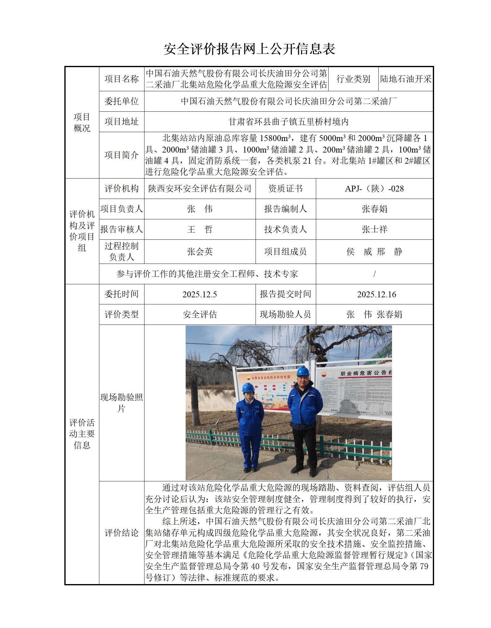 中国石油天然气股份有限公司长庆油田分公司第二采油厂北集站危险化学品重大危险源安全评估