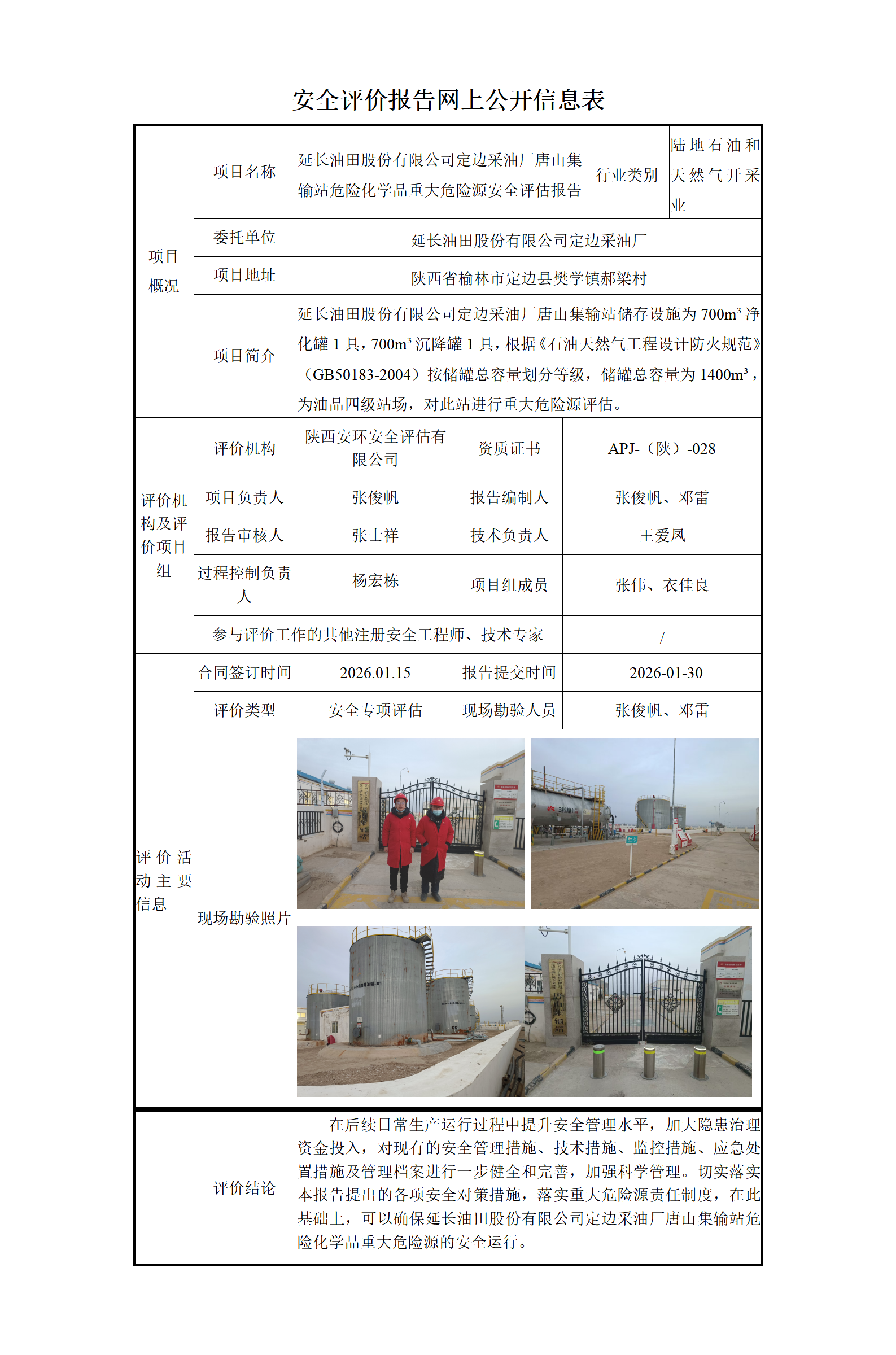 延长油田股份有限公司定边采油厂唐山集输站危险化学品重大危险源安全评估